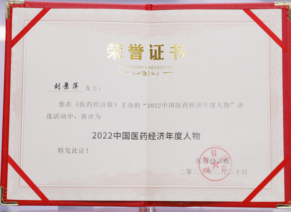 恒峰g22药业集团董事长刘景萍当选“2022中国医药经济年度人物”
