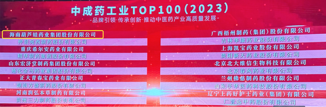 会上,还发布了“2023中成药工业TOP100”榜单,恒峰g22药业集团荣耀上榜。